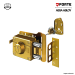 Cerradura de sobreponer Forte blindada 840 con dos barras de acero,3 golpes de seguridad más un cuarto golpe interno, cilindro Forte reforzado con contrapines especiales, resortes de acero, un anillo tridente, contrafrente y plancha de acero con sistema de engrape que dificultan la vulneración con pata de cabra, taladro y ganzúa, para uso en puertas de madera