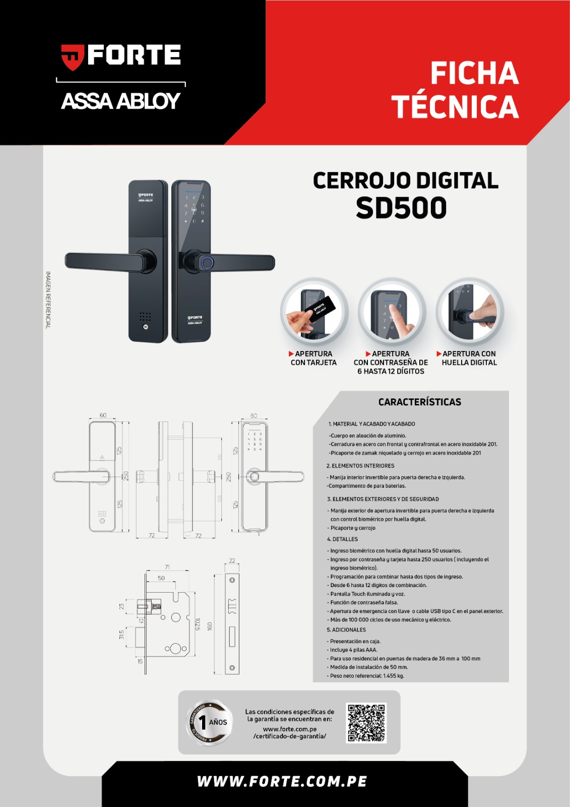 Con la cerradura digital SD500, olvídate de las llaves, haz que la tecnología forma parte de tu hogar, con esta moderna cerradura tu seguridad estará en control, de fácil uso e instalación, ideal para puertas principales e interior de madera.