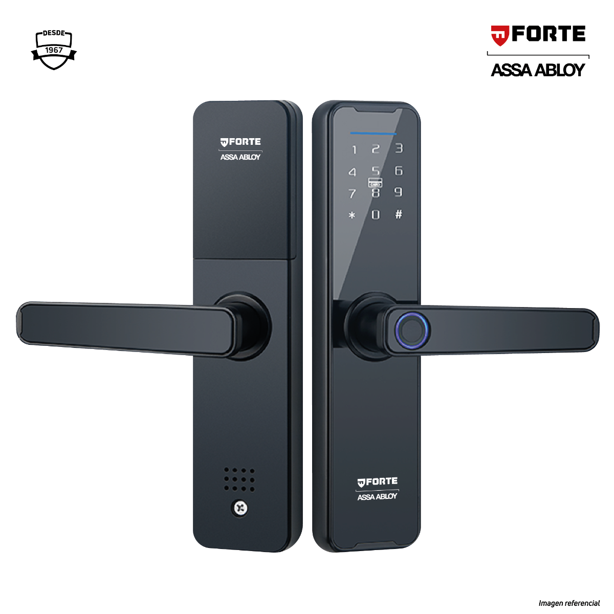 Cerradura digital fácil de usar con triple acceso huella digital, tarjeta y clave, cuenta con 2 llaves y un puerto Tipo C para apertura ante emergencia, FORTE tecnología que protege y diseño que impresiona.